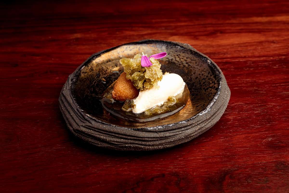 Las pelotas o rellenos en almíbar se elaboran en las casas manchegas en Semana Santa y se regalan a amigos y familiares para disfrutarlos como merienda entre procesiones. El chef ha llevado este dulce recuerdo de su infancia a su carta en una versión más renovada y cuidada en forma de postre apto para golosos: Rellenos dulces, helado de piñón y hierbabuena.“Los rellenos reciben este nombre porque hacen alusión a los rellenos del potaje, pero estos en versión dulce. Nosotros los cocemos en un almíbar de canela y luego los terminamos en un almíbar de ron. Los acompañamos con un helado de piñón, para tener el recuerdo de los piñones tostados que la receta tradicional siempre incluye. Para refrescar presentamos el postre con un granizado de hierbabuena”, anuncia Juan Monteagudo.