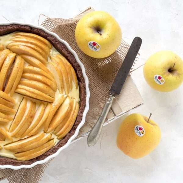 Tarta de cacao con crema de ricotta y manzana