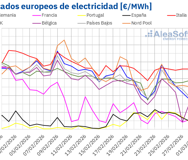 AleaSoft: Caída de Precios en los Mercados Eléctricos Europeos ante el Conflicto de Irán en marzo