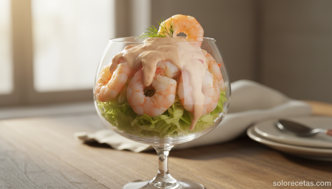 Hay pocas cosas que evoquen tanto una celebración familiar como una copa ancha llegando a la mesa con un cóctel de gambas bien montado: ese rosa pálido de la salsa, el verde crujiente de la lechuga asomando por abajo, una gamba entera colgada del borde y un aroma fresco a limón y eneldo que anuncia que la comida va a ser memorable. Es el entrante que abre banquetes, bautizos y cenas de Nochebuena en media España desde los años setenta, y sigue funcionando porque conjuga tres cosas difíciles: es frío, es sabroso y es fácil.